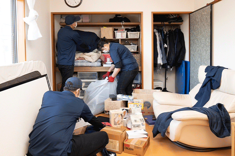 片付けをすると一言にいっても探したいものや必要な物などが必ずあります。ご家族でひとしきり探してから依頼をされる方、遠方なので貴重品や必要な物を見つけるところから依頼される方、できるだけ費用を抑えたいので小さなものは自分で片付けをして大きな家具などだけ依頼される方など様々なケースがあります。ひと家族ひと家族に合ったお片付けのやり方をご提案させていただきます。